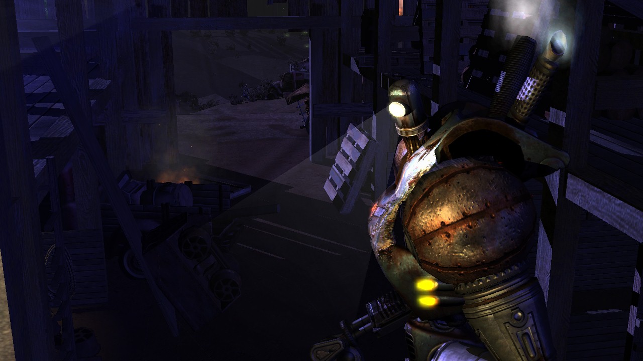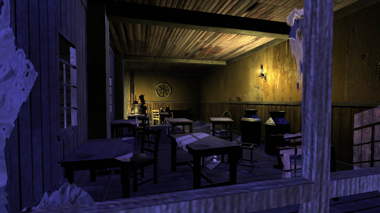 The demo also functions as an internal development test-bed, as it demonstrates a complex outdoor environment with next-gen data requirements (12,000 polygon main character with unique texture coverage in the scene via 2048px maps). The scene uses a large volume of data, including geometry, textures, materials, animations, particle systems and sounds.